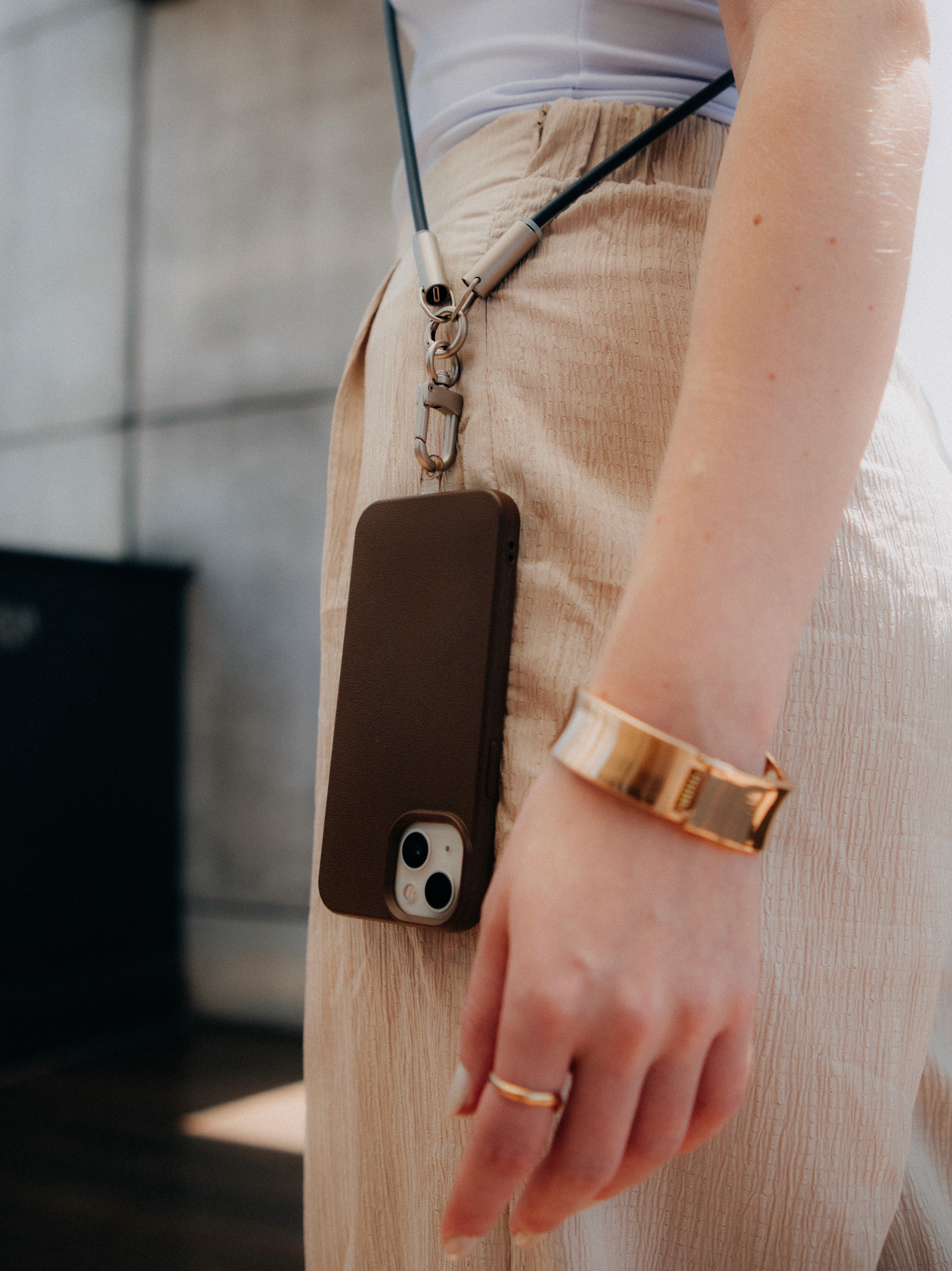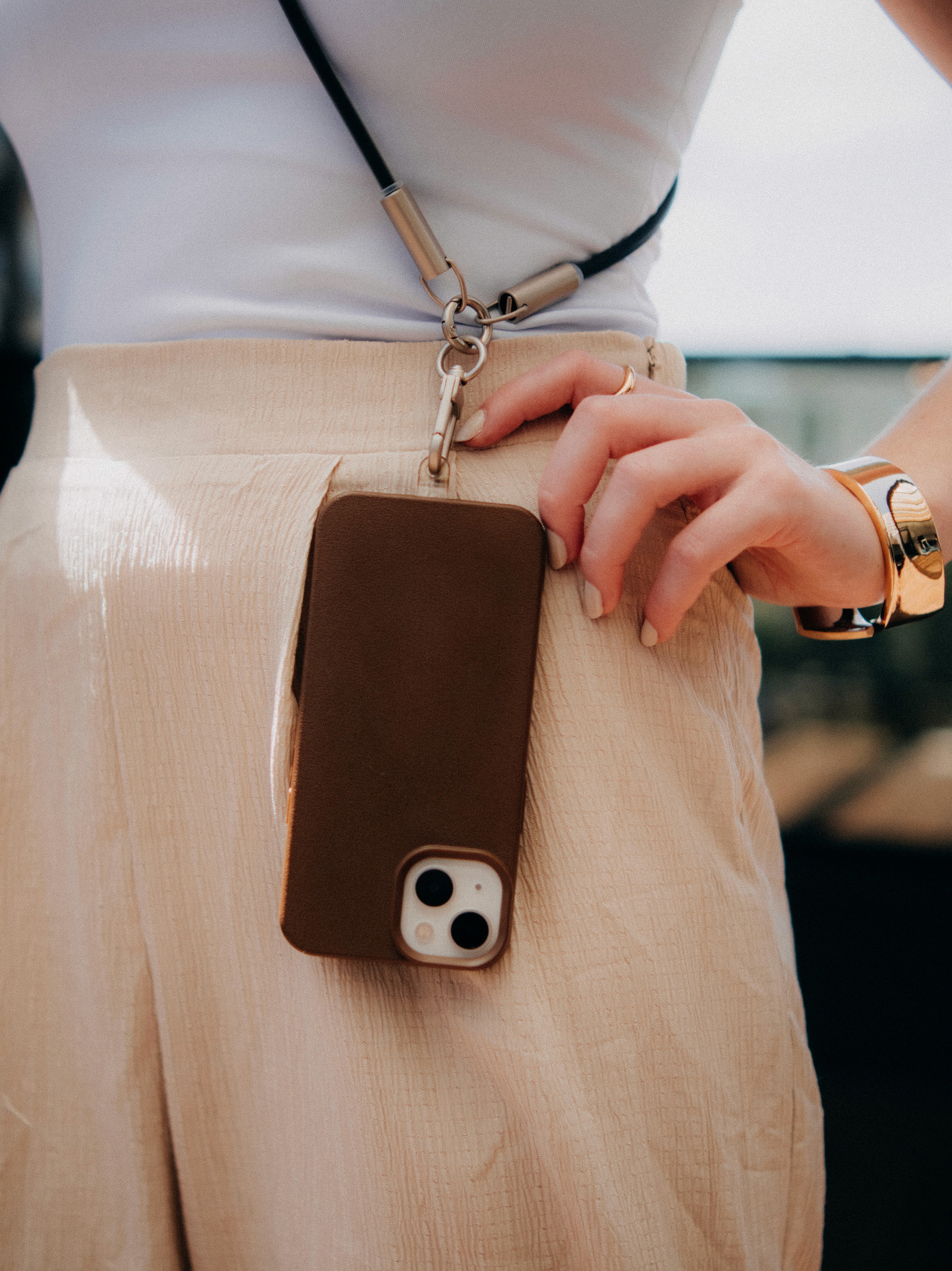 O Loop Charge é o cabo transversal que vira acessório. Ele pode ser usado como alça no corpo, deixando suas mãos livres para o que realmente importa, enquanto carrega seus dispositivos com praticidade e estilo.
